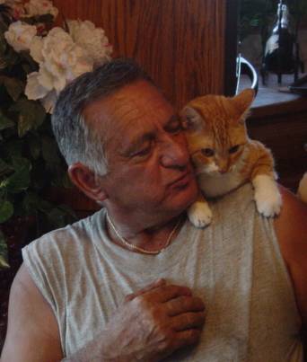 Boojie was rescued in 1988 at 10 weeks old when his mother was killed. He was one of 4 kittens. He touched our hearts from the beginning. It was evident that Boo was not just a cat. He had human actions that were so unique. He was very outgoing and LOVED everybody. Everybody loved him. He was automatically family. With Matt and I showing Persians at the time I decided to show Boo in the special household pet classes. These classes were for the everyday domestic cat. As you can see from above, Boo stole the show. He was household pet Champion many times, over an over. Many States, Kansas, Nebraska, Colorado, Michigan. Missouri, Oklahoma just to name a few. After Boo was retired from the show scene.... he found his one and only love- my father. They were/are inseparable........From 1994 on Boo and my father were an item. Everywhere my father was- there was Boo. Everywhere Boo was- there was my father. He even had is own place at dinner time. His own Santa Claus suit at Christmas time. In 1999 Boo was diagnosed with Cancer. For 4 years he underwent Chemotherapy. Eventually, he went blind in one eye from Glaucoma and the illnesses finally took their toll. Boojie died June 11th 2003. The day after Father's Day. All day Father's Day he never left my father's side. Boo is greatly missed and loved still even more and more everyday...